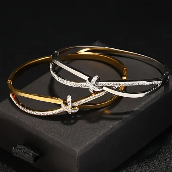 Stainless Steel Rhinestone Knot Bracelet for Women Men – Suitable for All Seasons, Valentine’s Day Charm Bracelet, Wedding Accessories
