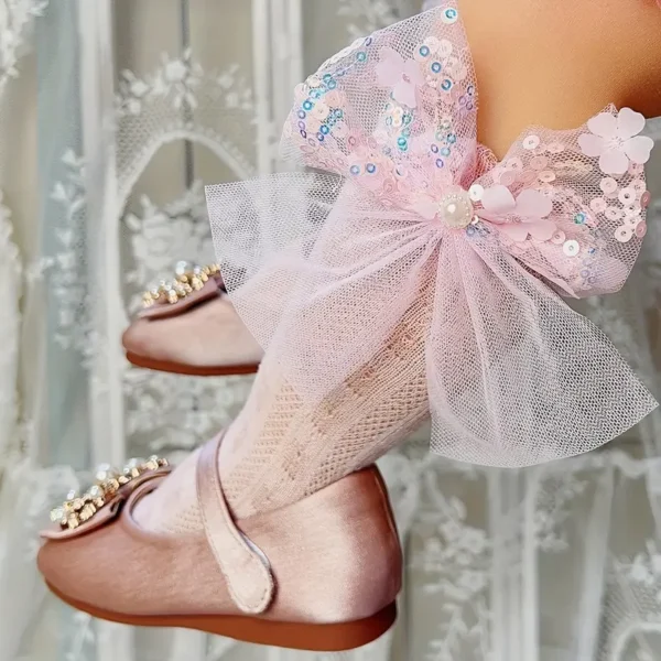 Sequin Pearl Bow Solid Color Mesh Socks 23K+ sold Sold by Jagoo children clothing Star sellerStar sellerStar seller
