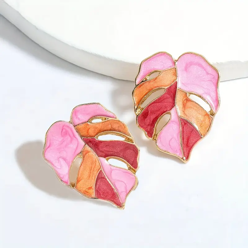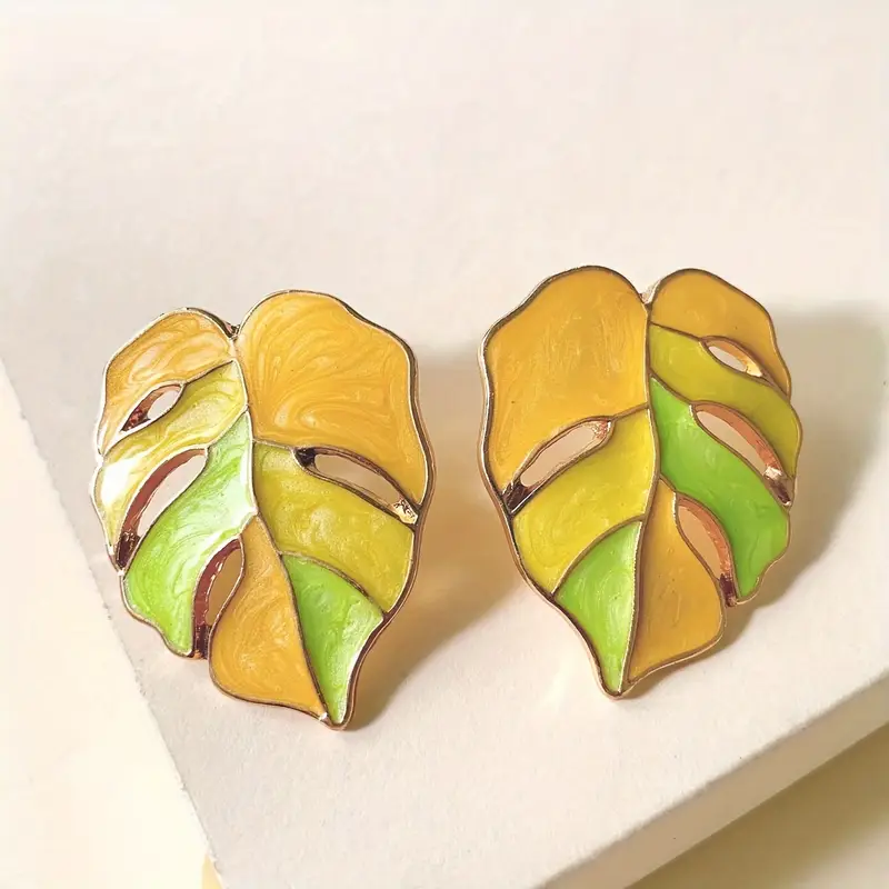 Add a vibrant pop of color to your everyday look with these minimalist “Dripping Oil” leaf-stud earrings. Featuring a whimsical, multicolor enamel finish over zinc alloy, they offer a playful yet refined accessory perfect for any season and occasion.