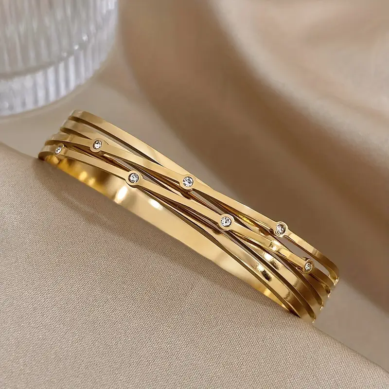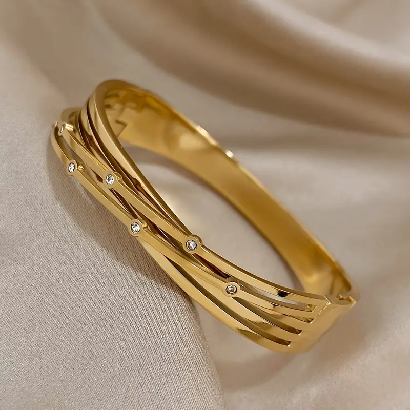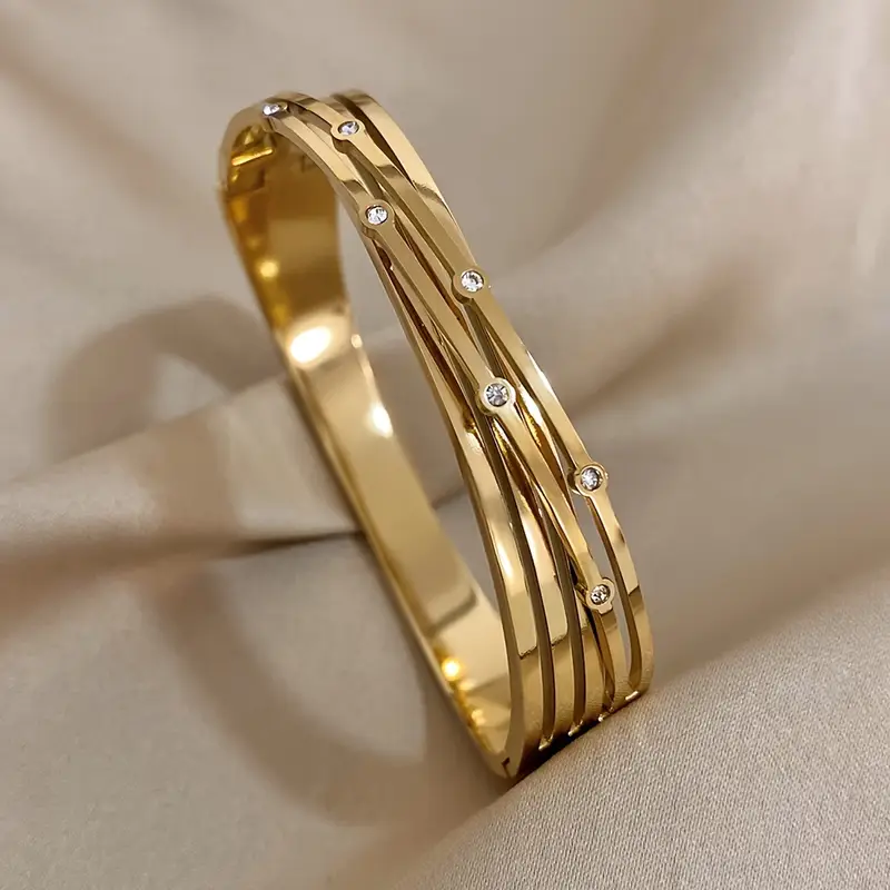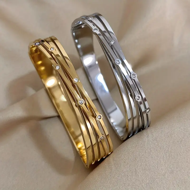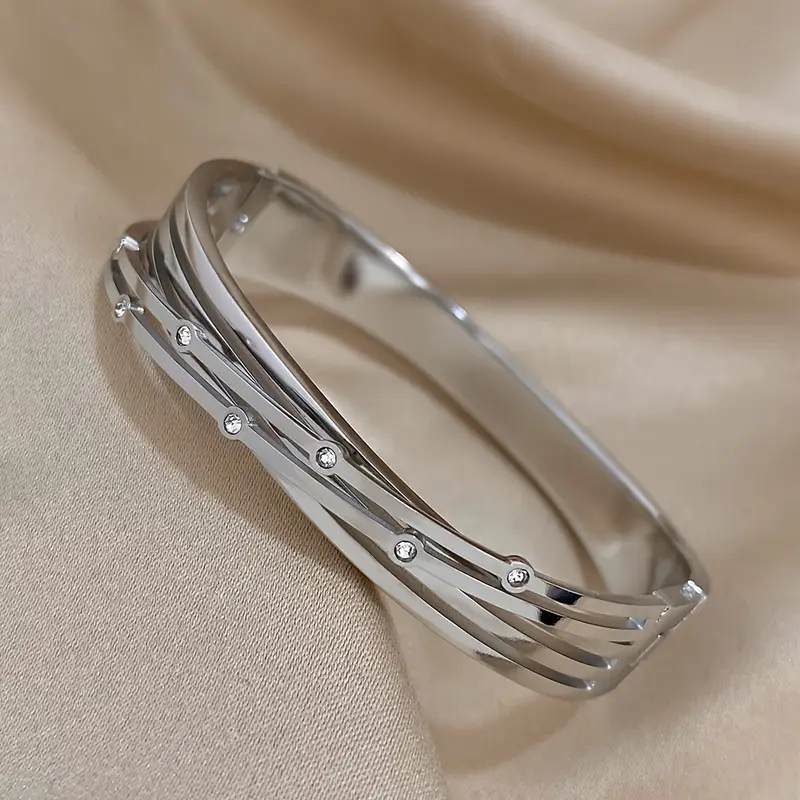 HomeUncategorized 1PC New Crossed Stainless Steel Bracelet Bangle With Rhinestone For Men Women Luxury Cuff Bracelets Jewelry Gifts