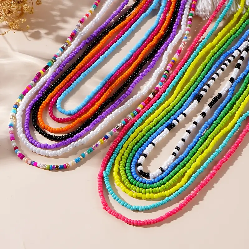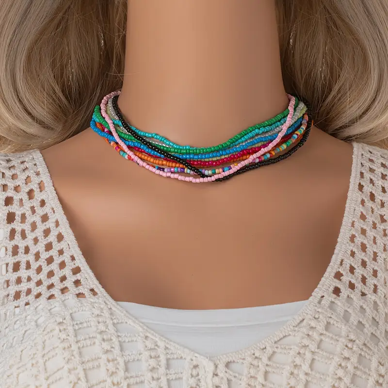 Embrace effortless boho style with this vibrant set of seed bead choker necklaces! Each pack includes 5 or 7 colorful, handcrafted chokers-perfect for layering or wearing solo. Ideal for summer vacations, casual outings, or thoughtful gifting.