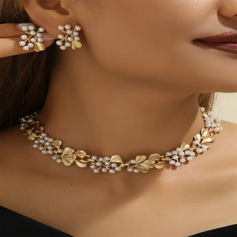 Elevate any look with this Elegant Boho‑Chic Faux Pearl & Golden Leaf Jewelry Set, a vintage-inspired duo designed for everyday elegance and special occasions. Crafted from zinc alloy and delicate imitation pearls, this set offers lightweight comfort and timeless bohemian charm. The necklace features a gracefully arched golden-leaf motif intertwined with lustrous pearls, paired with matching stud earrings. Ideal for daily wear, parties, weddings, or gifting, it seamlessly blends retro romance with modern flair—perfect for every season and outfit.