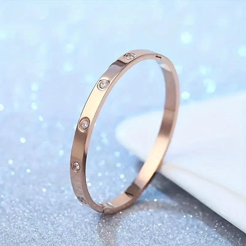 Discover the Elegant Temperament Bracelet, a classic and timeless accessory designed to elevate any look. Meticulously crafted from durable titanium steel and luxurious 18K gold plating, this bracelet gleams with sophistication. Dazzling synthetic zircon (cubic zirconia) stones are expertly set to maximize sparkle and elegance. Ideal for daily wear or evening occasions, it adds a graceful touch to any ensemble, all year round. A thoughtful and refined gift, this bracelet celebrates style and sentimentality.