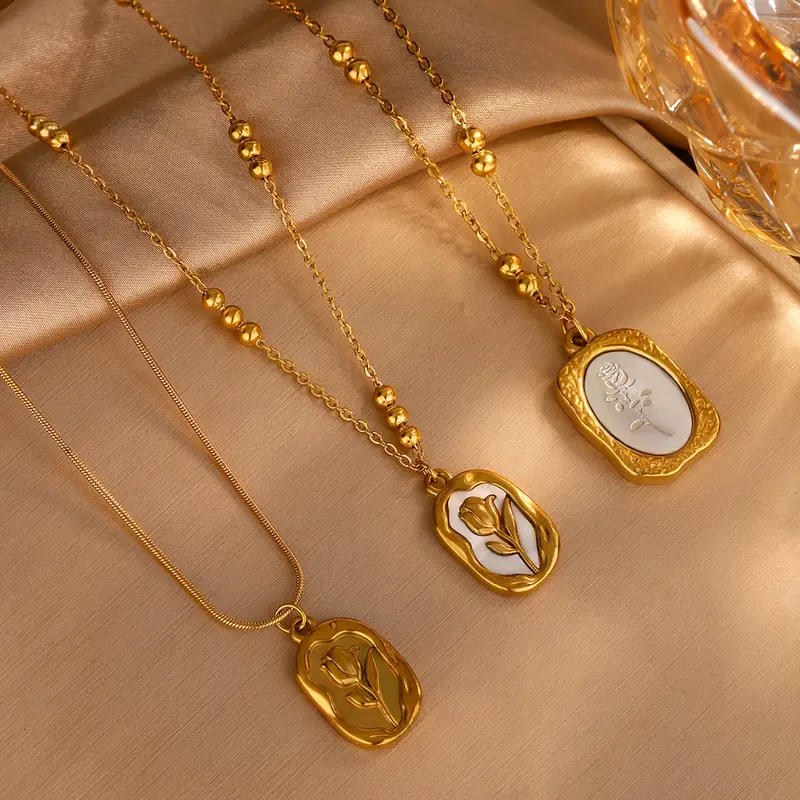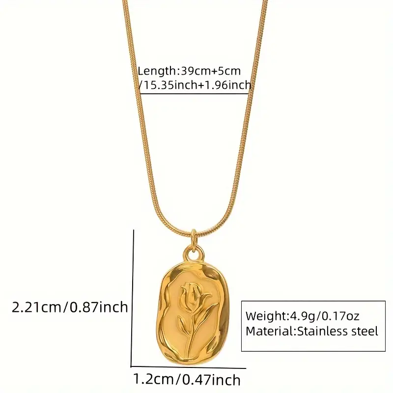 Embrace timeless elegance with this Inspired Rose Print Stainless Steel Pendant Necklace—a flawless addition to everyday wear or a heartfelt gift. Meticulously crafted from durable 304 stainless steel and adorned with a radiant 18K gold plating, it features a delicately textured rose motif that captures vintage charm. The compact, refined pendant hangs gracefully from a matching gold chain, ensuring effortless layering or solo wear. Hypoallergenic and resistant to tarnish, this piece is perfect for daily use across all seasons and ideal for birthdays, anniversaries, or heartfelt gestures.