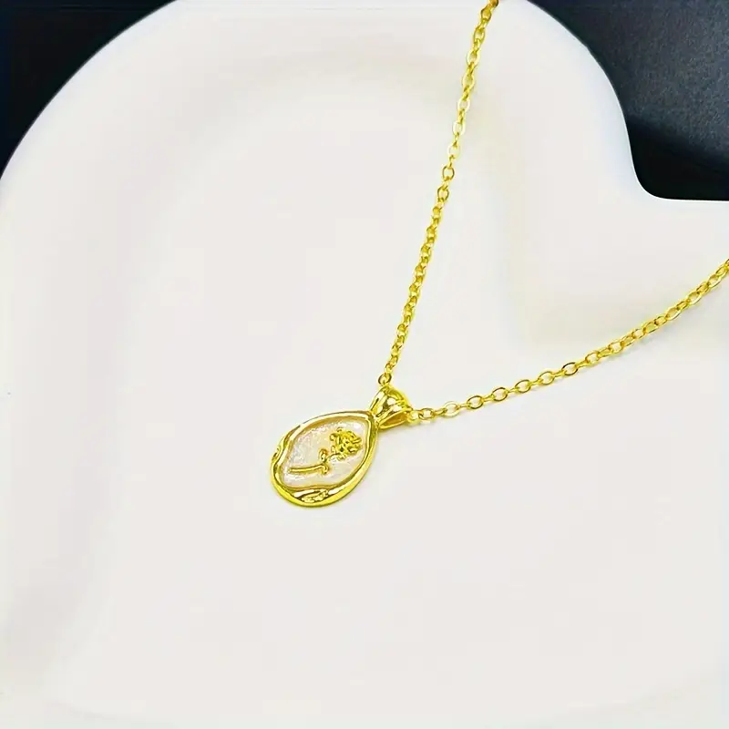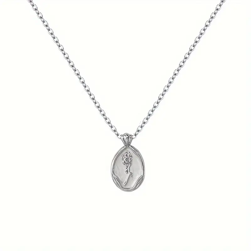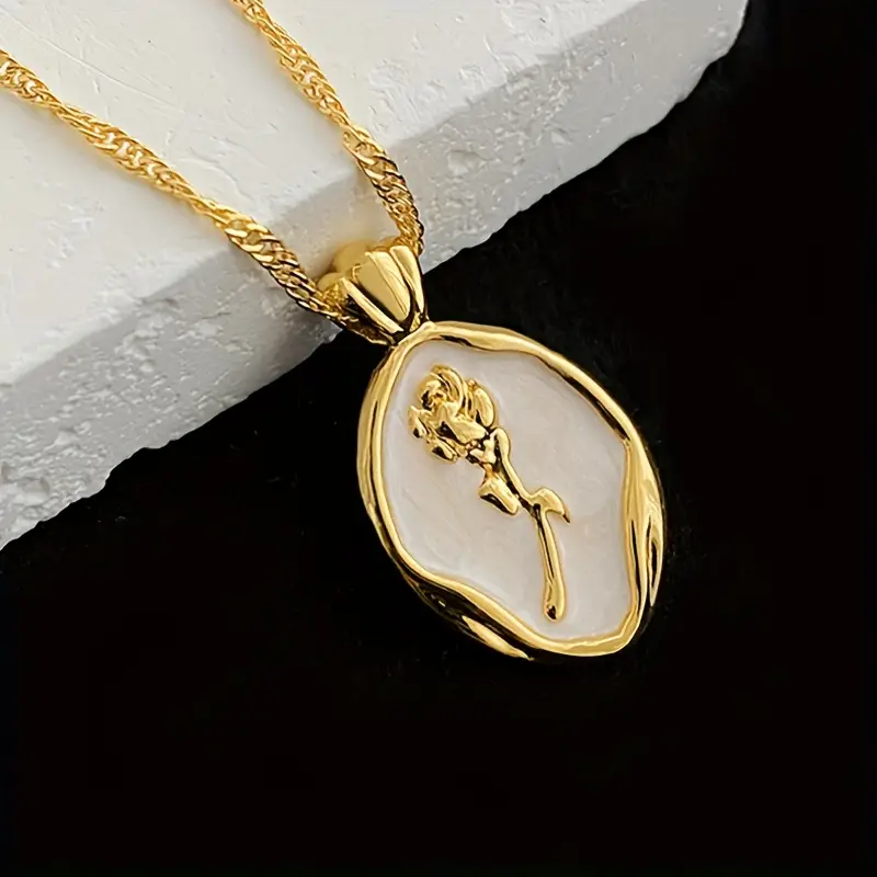 This elegant pendant necklace features a rose-shaped design, plated with white K for a lustrous finish. Crafted from durable alloy, it offers a luxurious yet affordable accessory suitable for various occasions. The timeless design makes it an ideal gift for brides, anniversaries, or as a thoughtful gesture for loved ones.